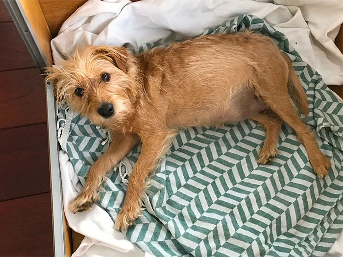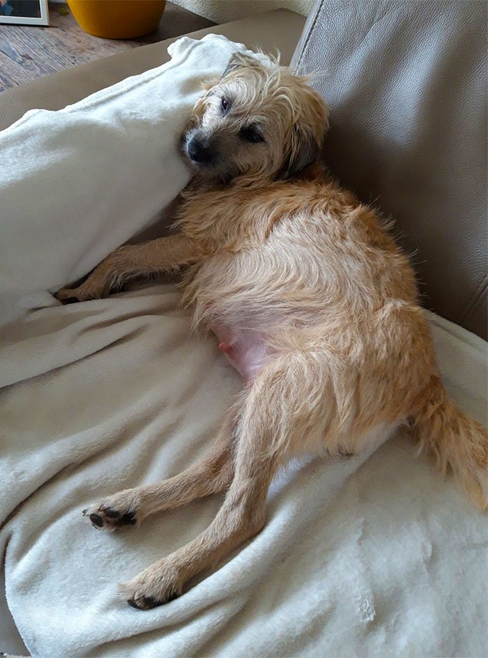 Vlak voor de baring wil de teef haar blaas en darmen volledig leeg hebben.