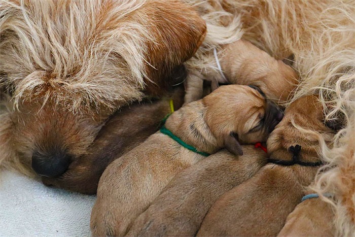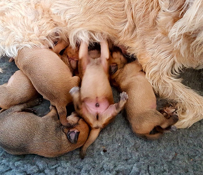 De teef moet u de eerste dagen goed in de gaten houden, rust geven, dus niet teveel mensen over de vloer en u moet haar goed voeden. U kunt zelf zien of het goed gaat met de moeder. Is ze toegewijd en rustig? Als ze een zieke indruk maakt en/of de pups aan hun lot overlaat, moet u de dierenarts waarschuwen.