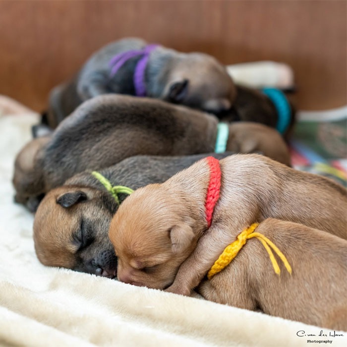 De pups zullen naar de nieuwe eigenaren vertrekken tussen de zeven en acht weken. Bij de plaatsing van elke pup bij de voor hem juiste eigenaren zal het Terugfokprogramma behulpzaam kunnen zijn.